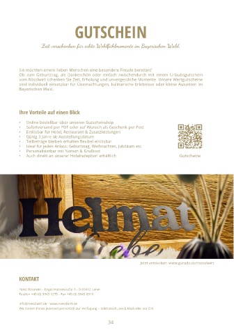 • Auch direkt an unserer Hotelrezeption erhältlich Gutscheine